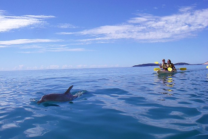 Experience an Epic Ocean Adventure back to nature and into the wild with our Dolphin View Kayak Tour. We take you on a stunning Great Beach Drive into the Great Sandy National Park to the spectacular Double Island Point. This location features scenic views of the Rainbow Beach coloured sands and Fraser Island, crystal clear waters warm all year round and lots of different wildlife to see.