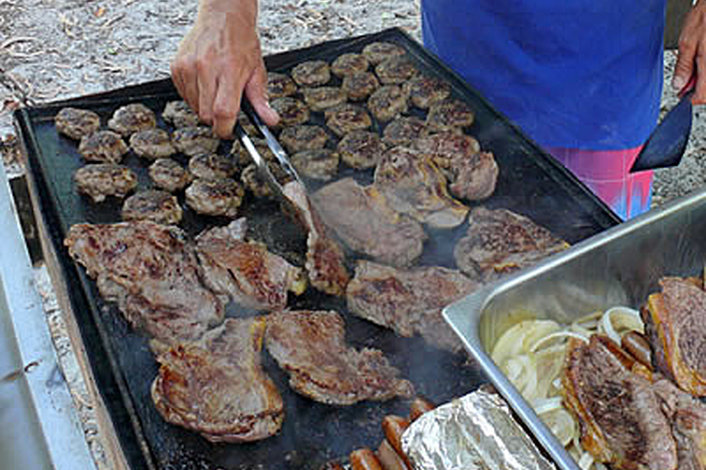 The tour spends approx 2.5-3 hours at the southern section of Whitehaven Beach. An Aussie Beach BBQ with steaks, sausages, chilli rissoles, salads, and tropical fruits. The famous BBQ is prepared for your enjoyment under the shade of the trees whilst using the National Parks picnic tables. Alternatively, dine on the sand, the choice is up to you. There is proper crockery and cutlery too. Share your dining experience amongst the wildlife including goannas and birdlife.